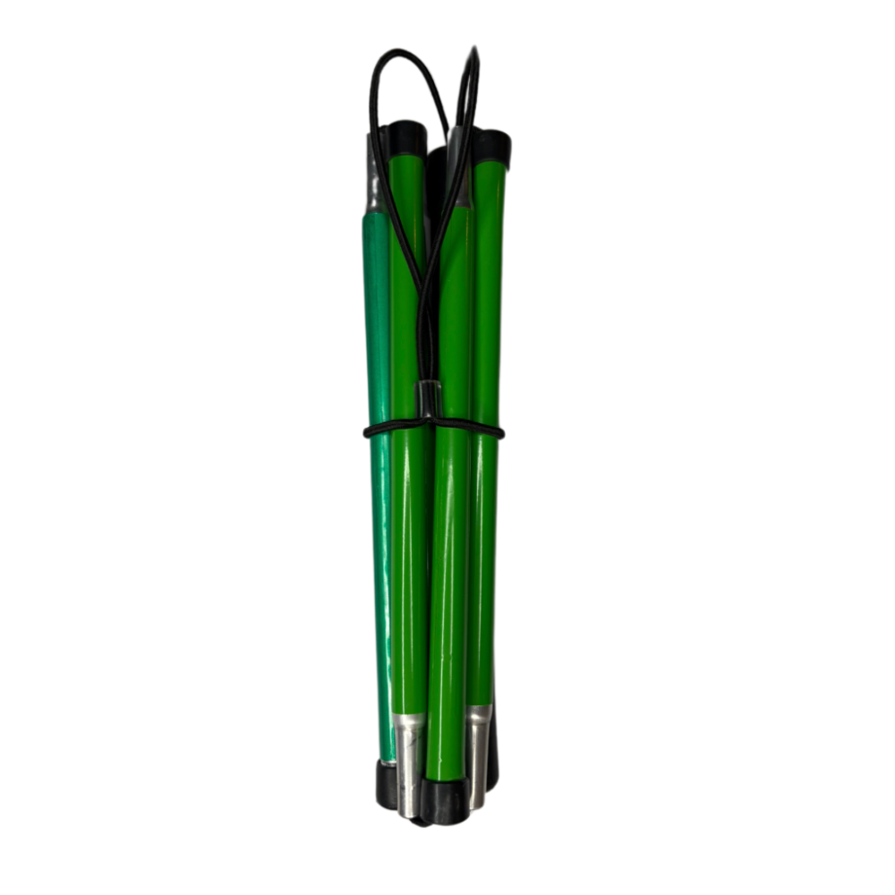 Feita de alumínio de alta qualidade, ideal para pessoas com baixa visão. Combina funcionalidade e design social, sendo mais fina e elegante que a bengala tradicional, agora disponível na cor verde, perfeita para uso no dia a dia com estilo e discrição. Auxilia na percepção de obstáculos, desníveis de pisos e objetos durante a caminhada, proporcionando maior segurança.