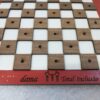 A base do tabuleiro possui um acabamento em lona e veludo, o que adiciona um toque de elegância e sofisticação ao produto. O veludo oferece uma superfície macia e agradável ao toque, além de proporcionar um acabamento de alta qualidade que ajuda a evitar danos ao tabuleiro com o tempo. A lona, por sua vez, é resistente e adiciona mais durabilidade ao conjunto, tornando-o ideal para ser utilizado tanto em casa quanto em ambientes externos.