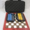 O Damas 25x25cm Dobrável é acompanhado de uma bolsa de lona acolchoada, disponível nas cores preta ou azul marinho, com alças para facilitar o transporte. Essa bolsa não apenas protege o tabuleiro e as peças, mas também oferece um sistema de organização eficiente para as peças do jogo, que são acondicionadas em bolsas de lona com face de cristal. Cada bolsa contém as peças separadas por cores, permitindo fácil acesso e garantindo que as peças não se percam ou se misturem.